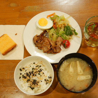 今日のメニューは、メインが生姜焼き。ご飯もとてもおいしく、おかわりもたくさんしていました。大黒屋さんから頂いたカステラも人気でした。